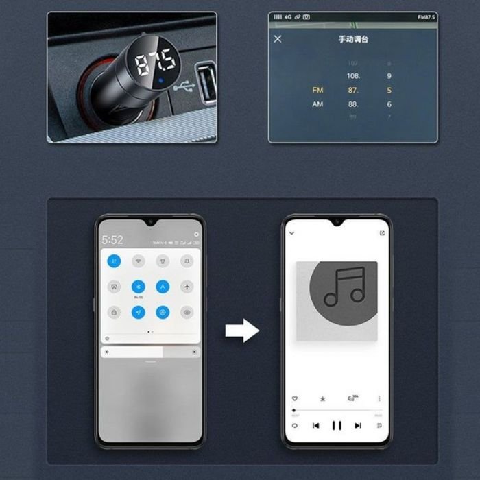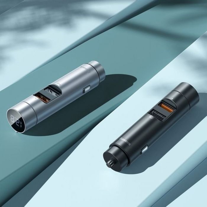 Baseus car charger with FM transmitter function. It is a multifunctional device that will improve the comfort of driving. Thanks to it, you can charge two phones at the same time and stop worrying about a discharged battery.