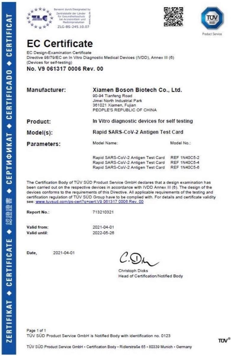 Boson Biotech Rapid SARS-CoV-2 (Covid-19) Antigen Test Kit