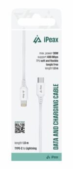 Câble iPeax USB-C vers Lightning – 90010111 – 1 mètre – Blanc