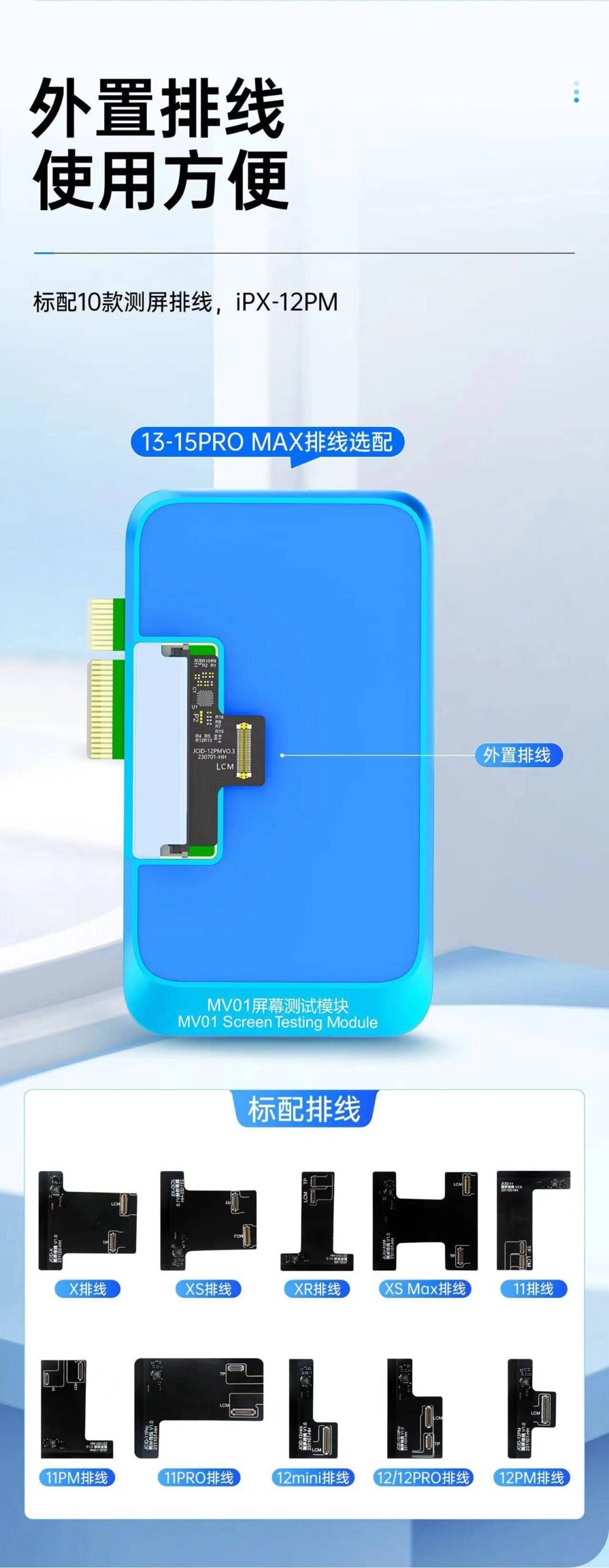 Programmateur JCID IC – Module de test d’écran MV01 et jeu de câbles