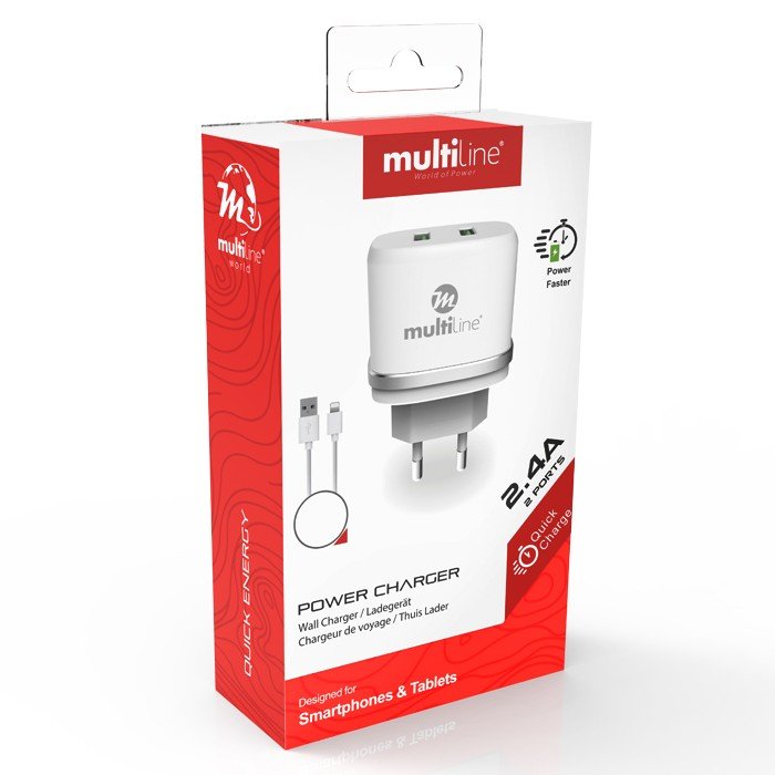 Multiline Power Dual Adapter – 2.4A incl. Type-C USB Cable