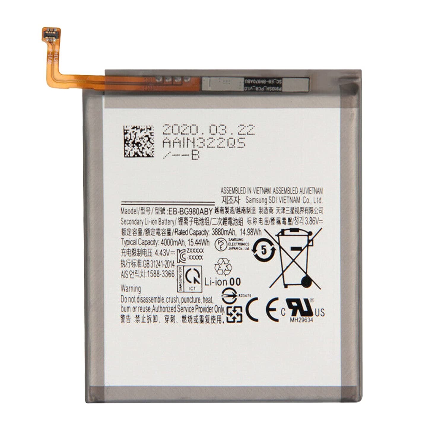 Samsung G980F Galaxy S20/G981F Galaxy S20 5G Batterie Ou Accumulateur – EB-BG980ABY – 4000 mAh