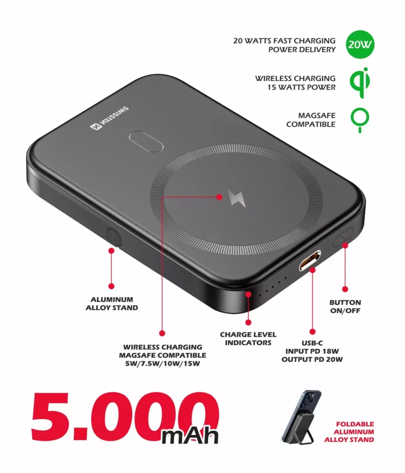Batterie externe MagSafe Swissten 20W – 22013975 – 5.000 mAh