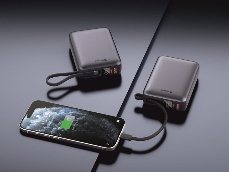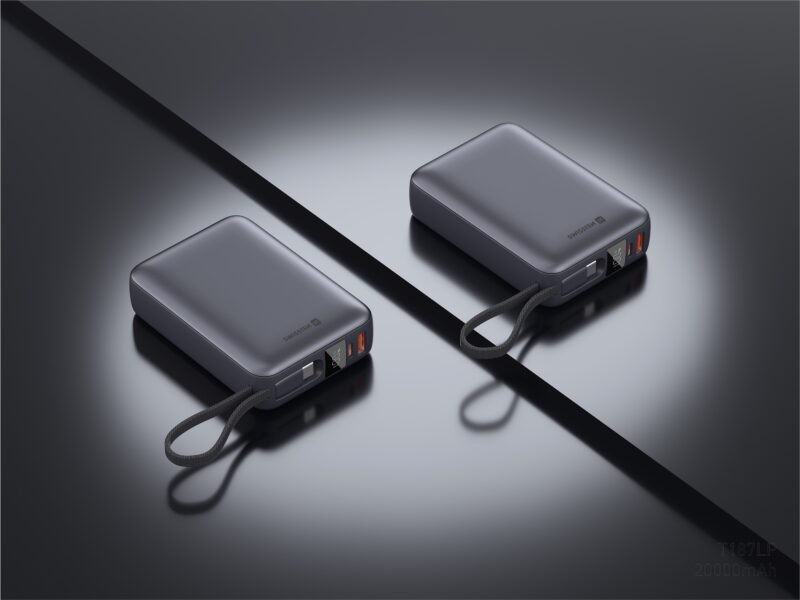 Powerbank Swissten 45W – 22013976 – Avec câble USB-C intégré – 20 000 mAh – Argent