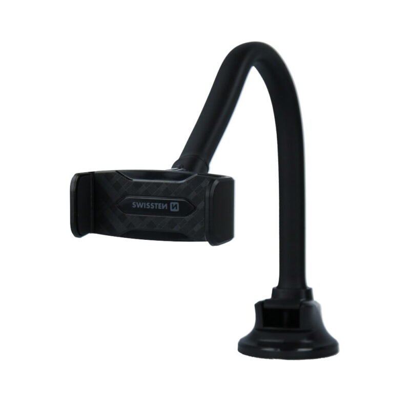 The SWISSTEN S-GRIP S3-HK car holder is designed for installation on a windscreen or dashboard. The jaws of the holder have a span of up to 85mm. It has a goose neck with a length of 36 cm. Packed in Swissten blister.