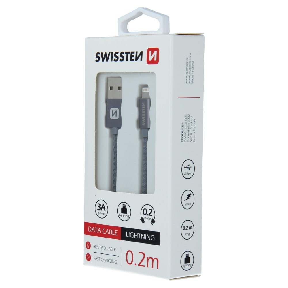 Swissten Textile Lightning Cable – 71523102 – 0.2m – Gris