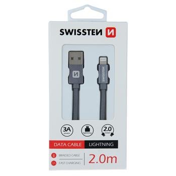 Haute Qualité textile data cable USB / Lightning with length of 2,0 m. The cable reinforced to deliver a higher current (up to 3A) and can handle fast 480 Mb/s data transfer. Packed in Swissten retail pack. 8595217455702