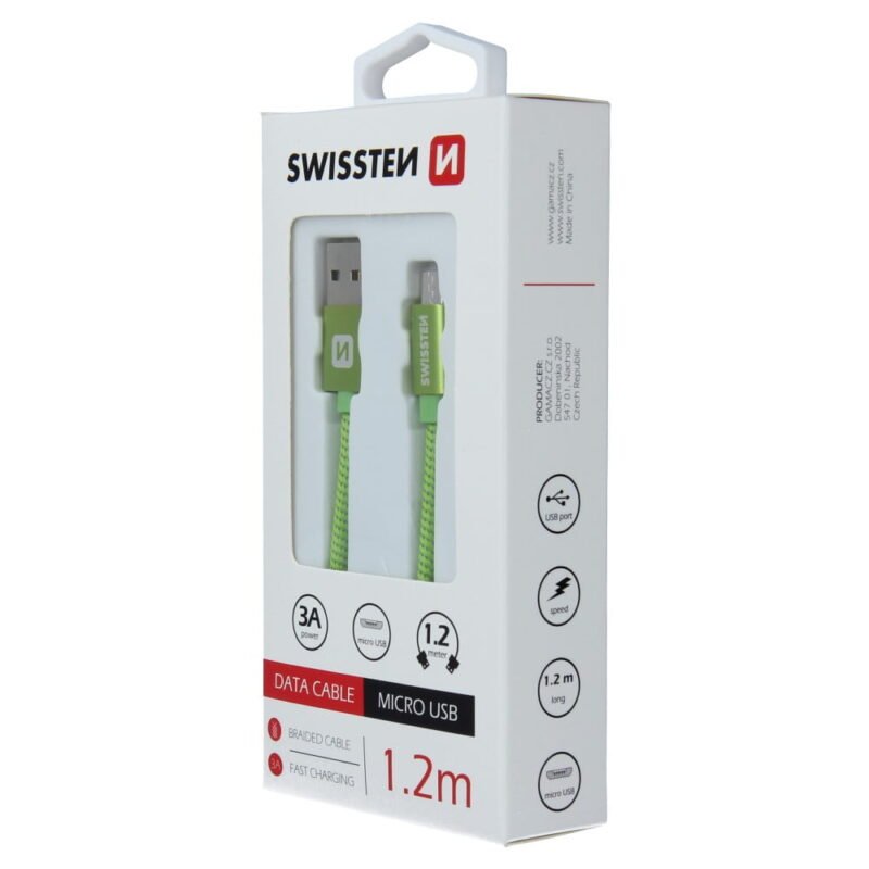 Swissten Textile Micro USB Cable – 71522207 – 1.2m – Vert