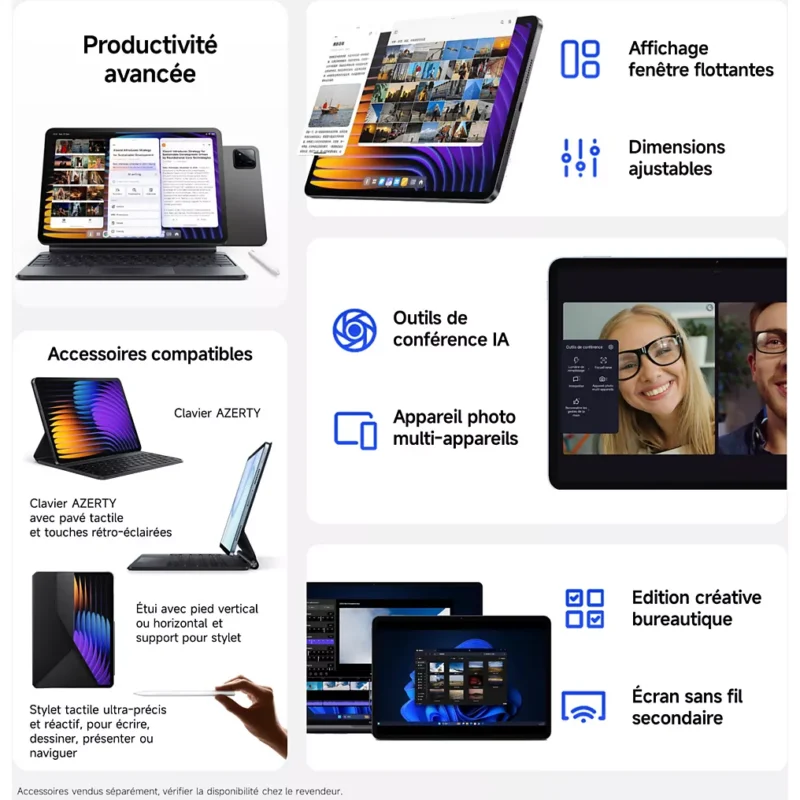 La Xiaomi Pad 7 est équipée de fonctions d’intelligence artificielle qui vous aident à travailler plus efficacement et à être plus créatif. L’intégration de Google Gemini vous donne un accès instantané à un assistant IA intelligent qui vous aide à faire des brainstormings, à générer du texte et à effectuer des recherches. La superposition Gemini vous permet de poser rapidement des questions sans changer d’application. En outre, la calculatrice IA vous permet d’écrire facilement des formules mathématiques complexes et de les résoudre. Le générateur d’images vous aide à créer du contenu visuel. En bref, l’IA rend votre tablette plus intelligente et plus productive.