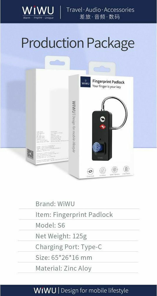 WiWU Smart device S6 Fingerprint padlock Noir